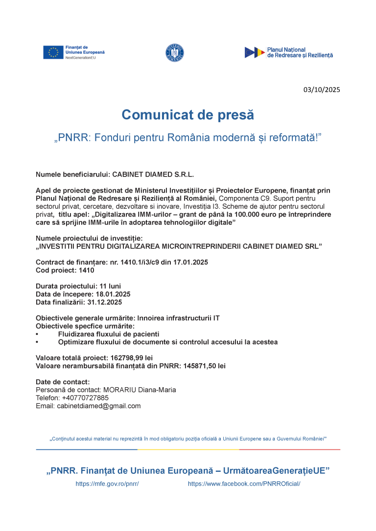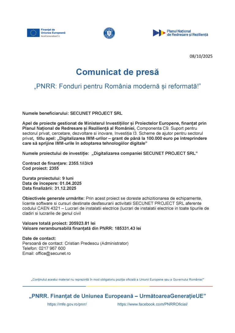 Anunțuri și Comunicate de Presă Proiecte Europene